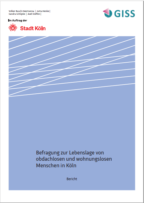 Die GISS hat im Auftrag der Stadt Köln im Jahr 2023 eine umfangreiche Studie zu den Lebenslagen wohnungsloser Menschen in Köln durchgeführt. Auch das Kölner Hilfesystem für Menschen in Wohnungsnotlagen wurde erfasst. Knapp 800 wohnungslose Menschen und circa 20 Vertreterinnen und Vertreter des Hilfesystems wurden befragt. Die Erhebung berücksichtigte alle Gruppen wohnungsloser Menschen – ob in institutioneller Unterbringung oder ohne. Die Studie beinhaltet Empfehlungen für alle Handlungsfelder der Wohnungsnotfallhilfe sowie die Steuerung der Hilfen.